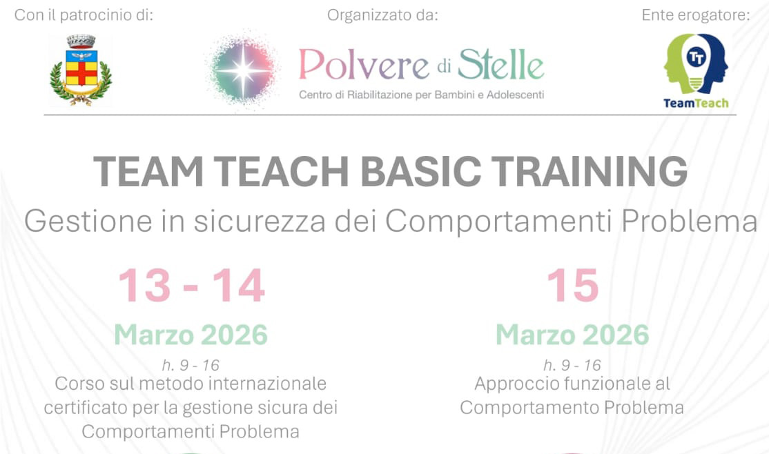 Siamo liete di annunciare che il nostro Centro ha organizzato il corso TEAM TEACH BASIC TRAINING, basato sul metodo internazionale Team Teach, certificato per la gestione sicura dei comportamenti problema,